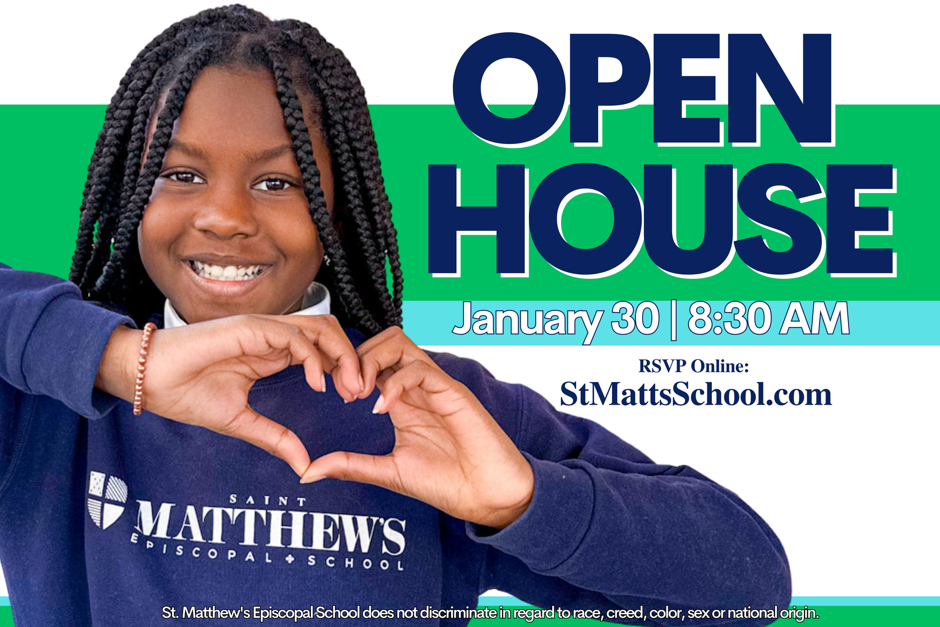 Saint Matthews Episcopal School admits students of any race, color, national and ethnic origin to all the rights, privileges, programs, and activities generally accorded or made available to students of the organization. It does not discriminate on the basis of race, color, national and ethnic origin in administration of its educational policies, admissions policies, scholarship programs, and other organization-administered programs.